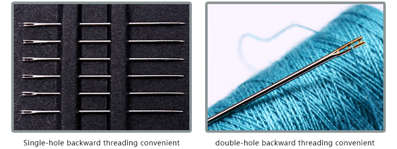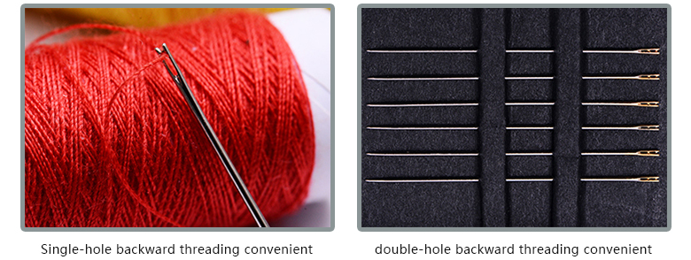 The single-hole and double-hole backward threading convenient needles produced by our company and the recently developed sideways threading convenient needles are new-type hand sewing needles that completely change traditional hand sewing needles’ structures according to modern people’s living pace. They are new-type quality hand sewing needles especially designed and produced for modern people or persons who find threading inconvenient.
